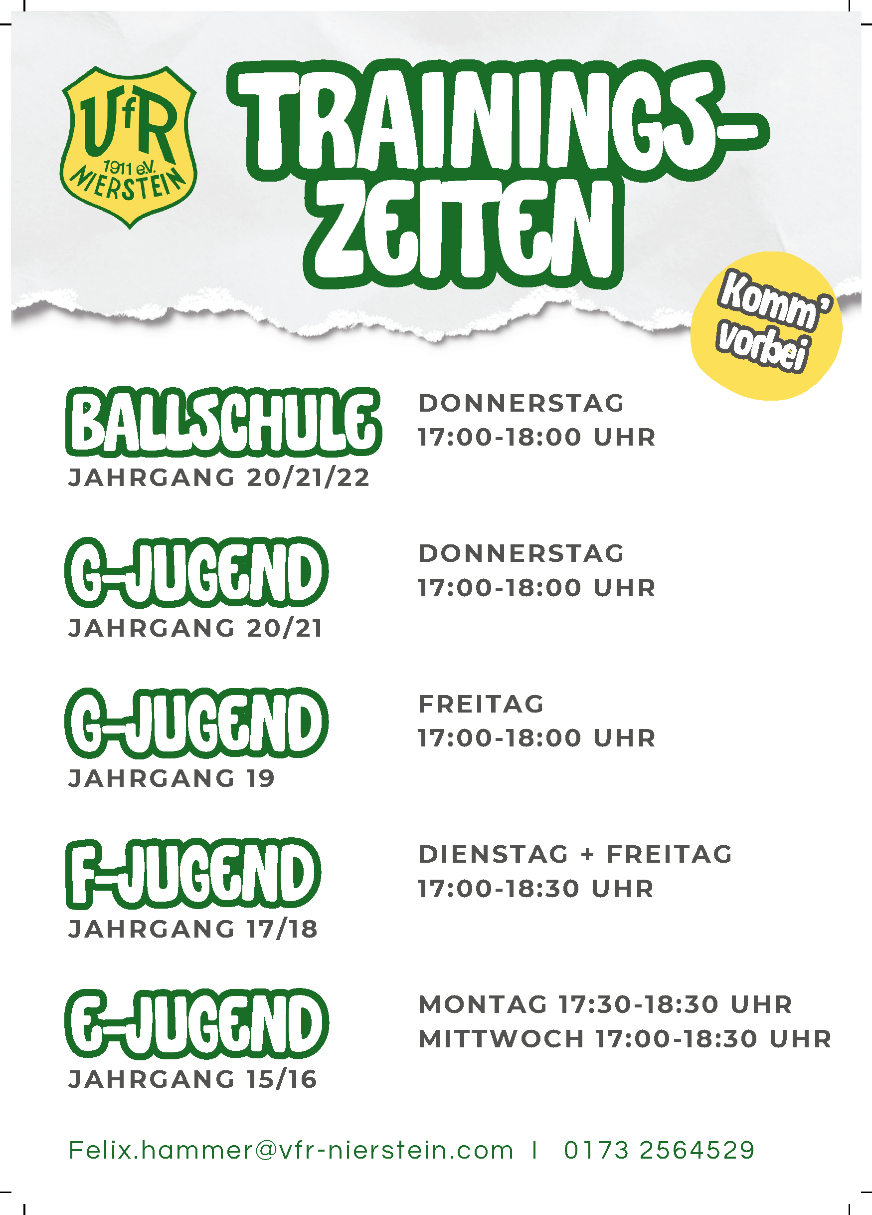 Wir legen großen Wert auf eine offene und familiäre Atmosphäre, in der sich alle Kinder und Eltern wohlfühlen. Die Einbindung der Familien in das Vereinsleben stärkt die Gemeinschaft und macht den VfR Nierstein zu einem zweiten Zuhause für viele junge Sportlerinnen und Sportler.