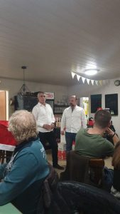 - Aktive Unsere Aktivenabteilung feierten im Vereinsheim. Es waren viele Spieler mit Begleitung, Trainerteam, Sponsoren und Offizielle gekommen. Auch hier wurde bei den Ansprachen vom 1. Vorsitzenden, dem Trainer und Spielführer beider Mannschaft, der Gemeinschaftssinn hervorgehoben. Dies ist die Grundlage für den Erfolg. Diese Tatsache wurde mit großem Applaus begleitet. Alle waren sich einig, dass das Buffet und die Tombola eine Augenweide war. Tim Gerhardt hatte einen großen Anteil, dass die Tombola sehr gelungen war. Dafür Danke! Vielen Dank für den schönen Abend und viele Grüße DER VORSTAND